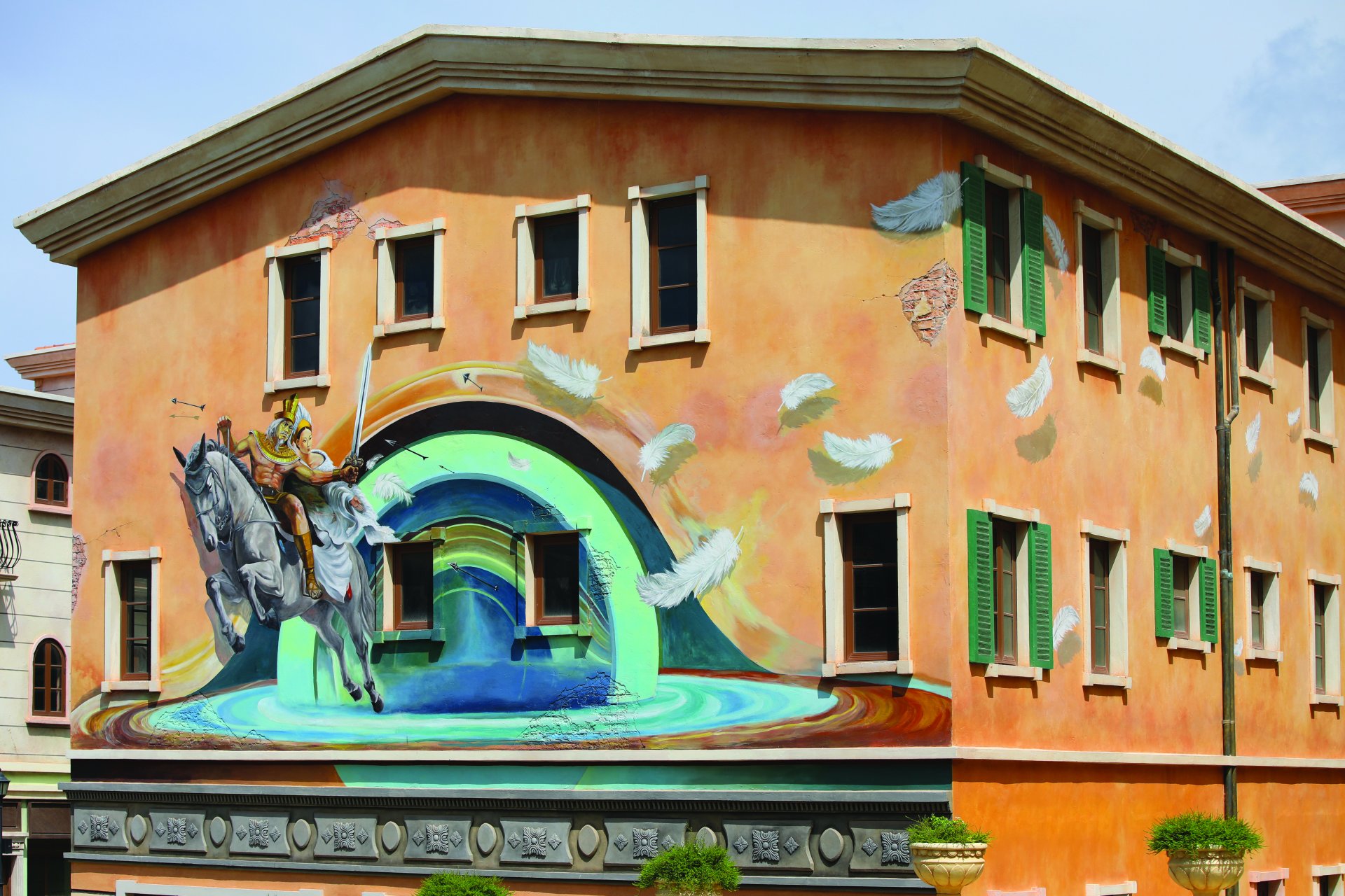 Dạo bước qua những con phố của Sunset Town, bạn sẽ bị cuốn hút bởi những bức tường sống động được trang trí bằng tranh 3D đầy nghệ thuật.